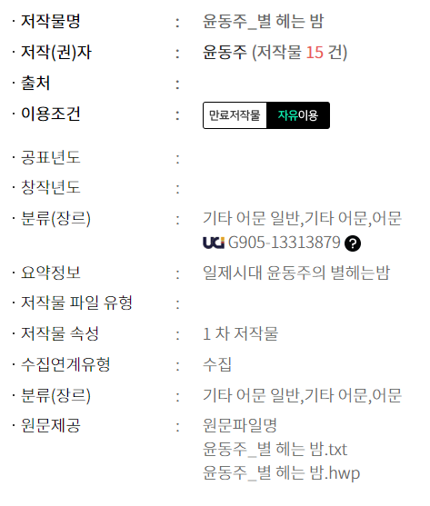 title : 윤동주_별 헤는 밤 authr : 윤동주by site : 공유마당 저작권 위원회