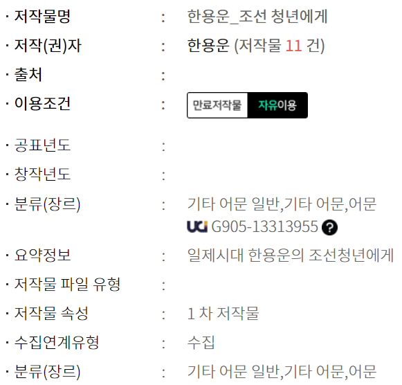 한용운 - 조선 청년에게