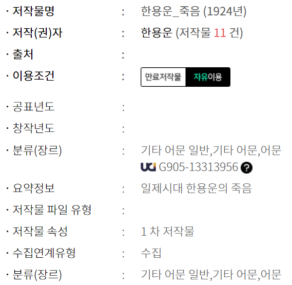 한용운 - 죽음 (1924년)